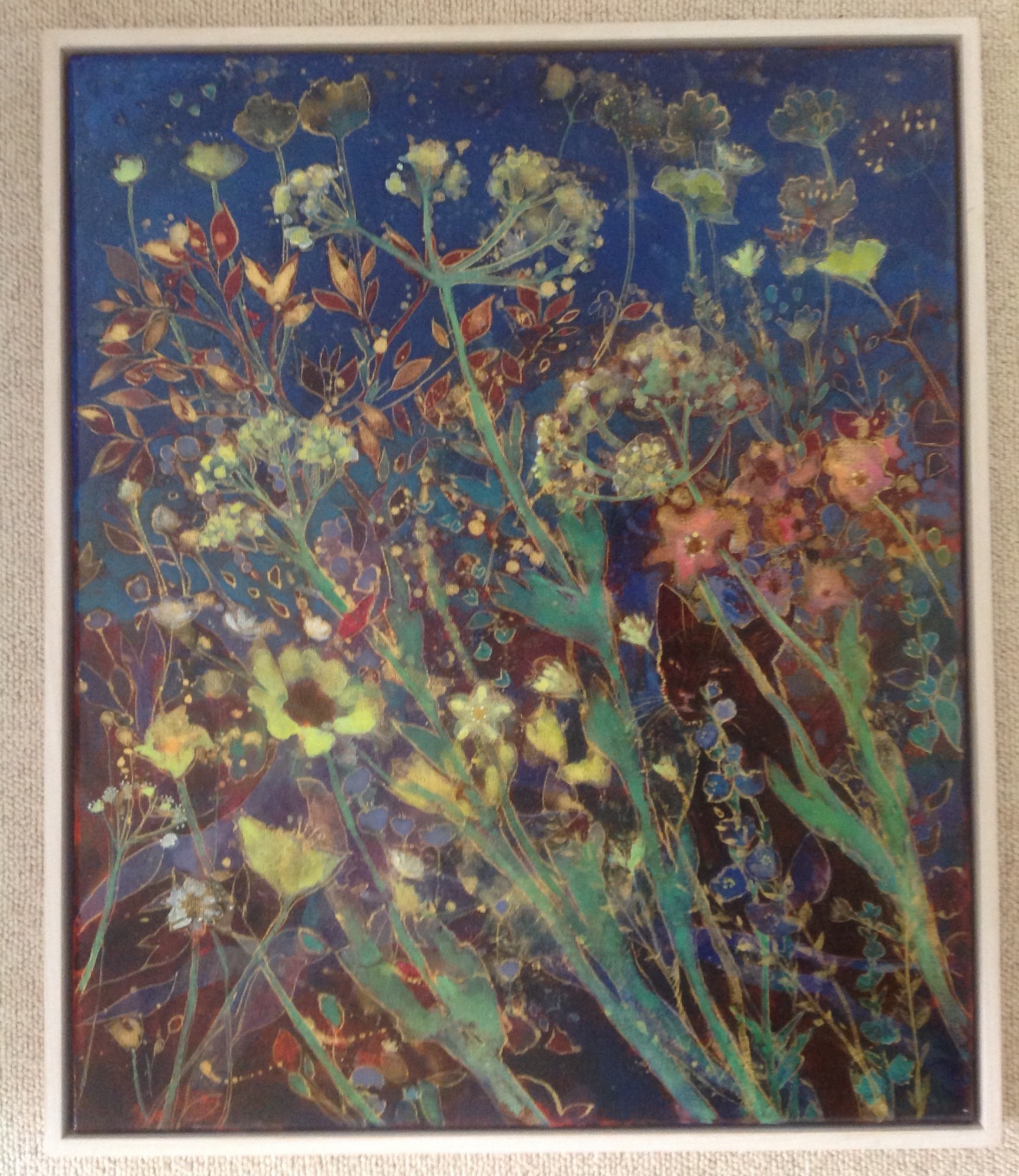 Acrylic on canvas with sturdy white wash wood frame 60 x 50 cm. Colours more vibrant than appear in photo. A lovely addition to any room.